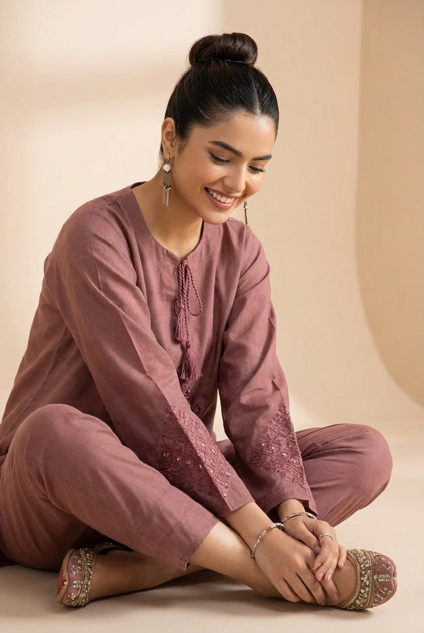 • Dusty rose hand emborided co_ord set